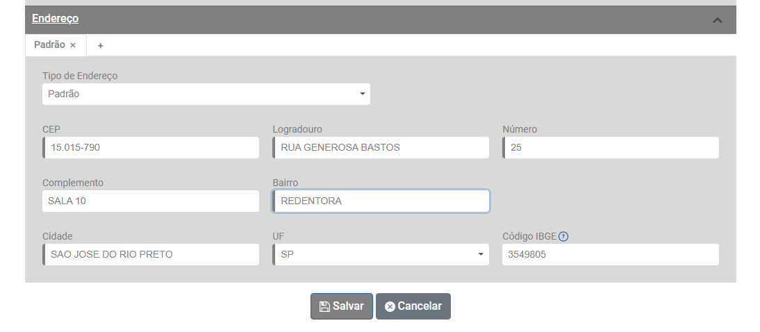 Acesse o campo Endereço e confira todas as informações cadastradas para os endereços cadastrados para esse cliente (padrão, entrega, cobrança, outros, etc)