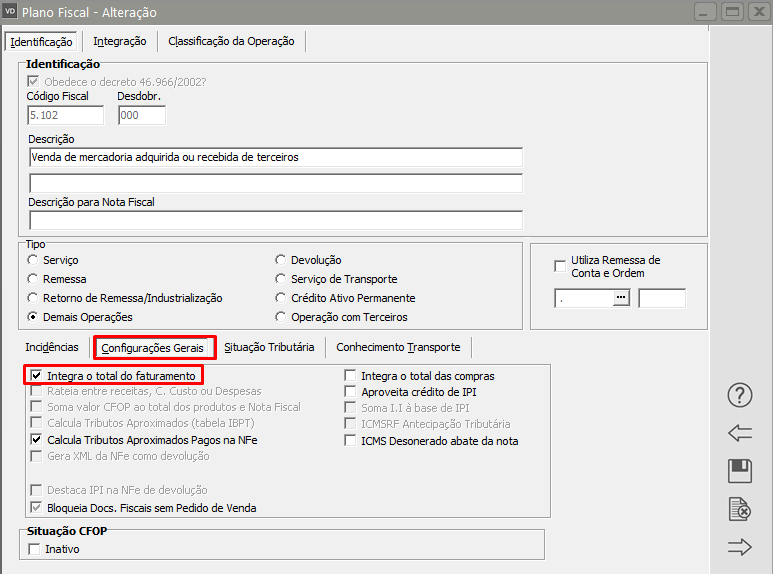 Caso haja necessidade faça a alteração e lembre-se que essa configuração será utilizadas nas próximas notas emitidas com esse mesmo CFOP