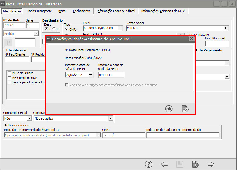 Serão apresentadas as informações do novo XML gerado, clique em OK