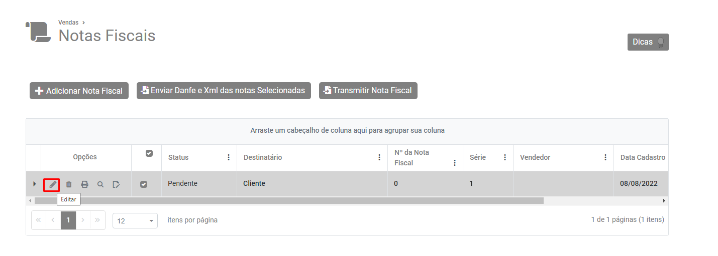 Pesquise pela Nota Fiscal e faça a edição da mesma.