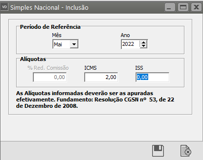 Informar a alíquota de crédito do Simples Nacional.