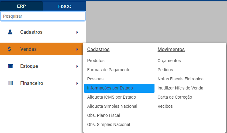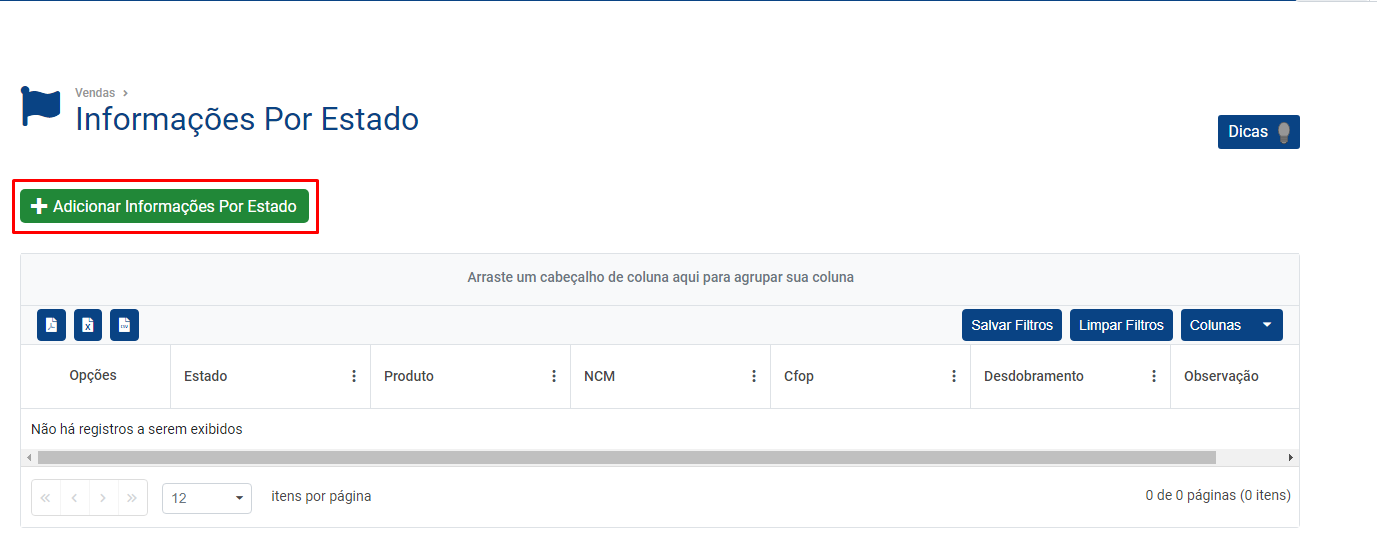 Acesse o cadastrobotão Adicionar Informações por Estado