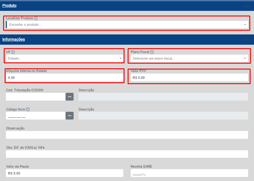 Em seguida cadastre as informações relativas ao NCM/Geral (caso o cálculo deva ser feito para essetodos produto/NCM,os Estado,produtos que tenham aquele NCM em seu cadastro) ou do produto específico caso o cálculo deva ser feito apenas para aquele produto.