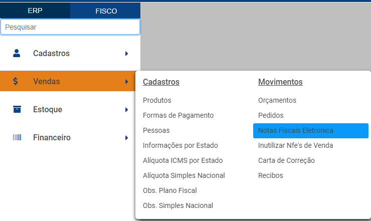 Emem seguida acesse o menu MovimentaçãoVendas>Nota Fiscal eletrôEletrônica>Manutenção,