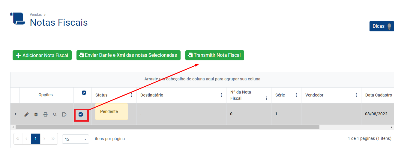 Em seguida Salve a Nota Fiscal Eletrônica e o Sistema irá questionarretornar separa desejaa Recalculartela valorescom dasa informaçõeslistas porde Estado,notas fiscais cadastrada, selecione a NFe e clique emno SIMbotão eTransmitir salveNota a NF-e.Fiscal.