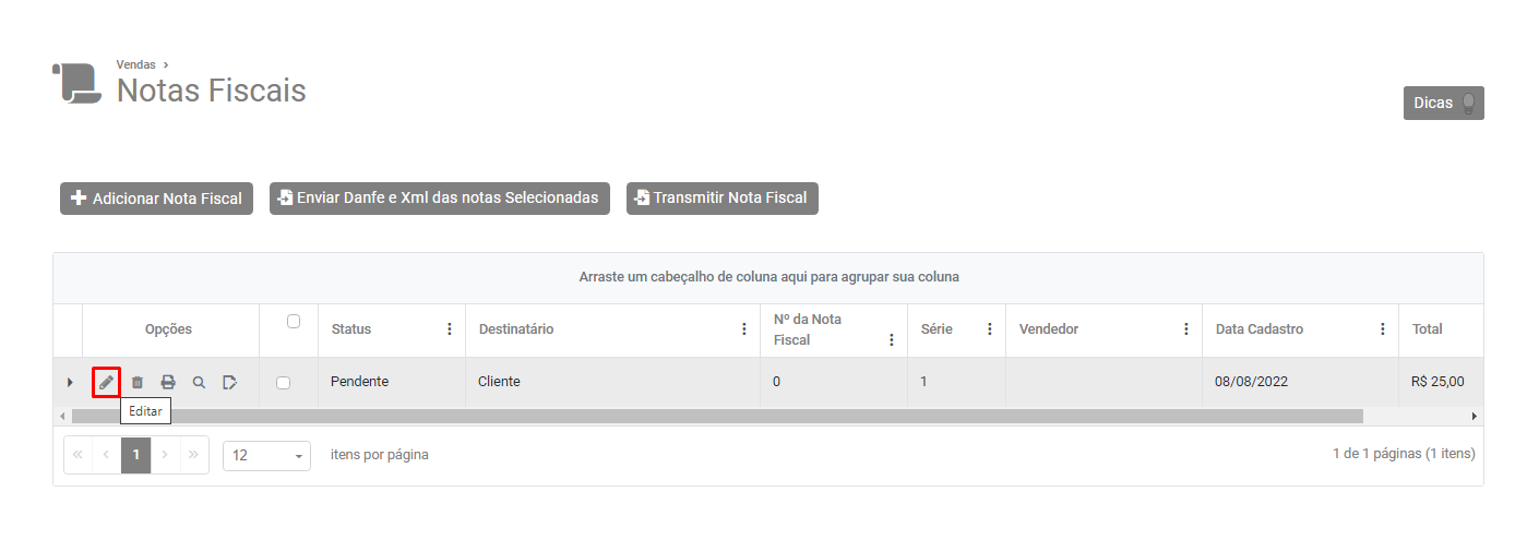 Em seguida edite a NFe e salve novamente, para que o Sistema atualize as informações.