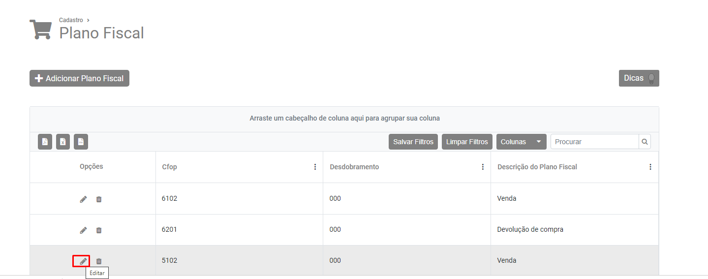 Pesquise pelo CFOP utilizado na emissão da NF-e e faça a edição do mesmo.