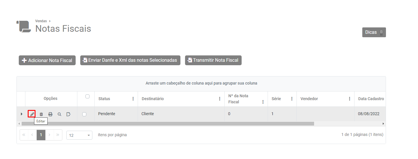 Pesquise pela nota fiscal que foi rejeitada pela Sefaz e faça a edição da mesma.