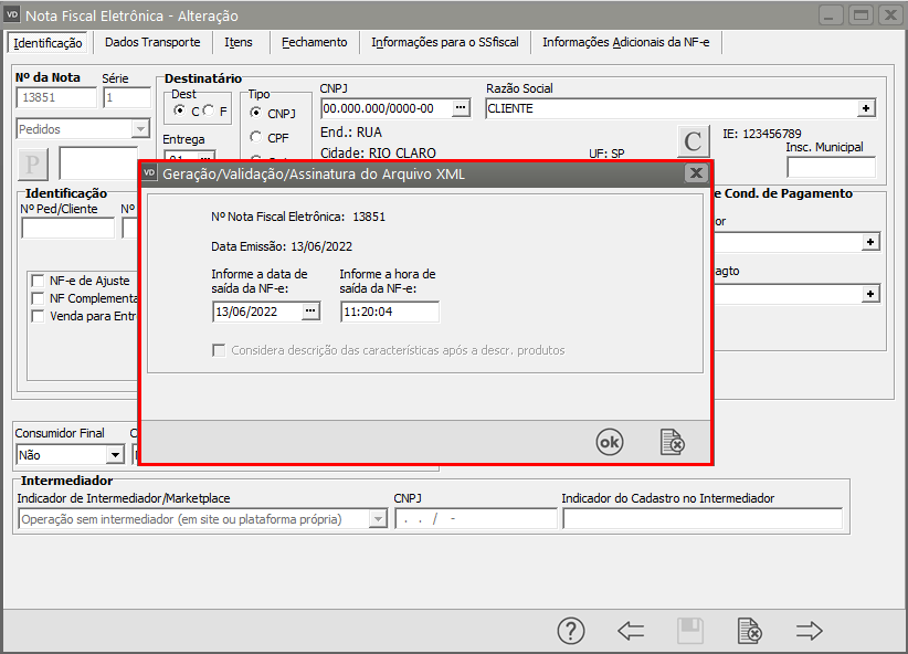O Sistema irá apresentar a tela contendo as novas informações do XML, clique em OK.