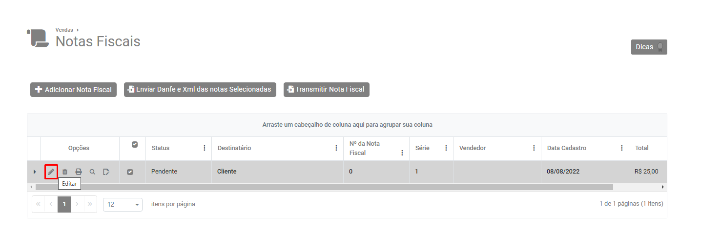 Pesquise pelo número da NF-e e faça a edição da mesma.