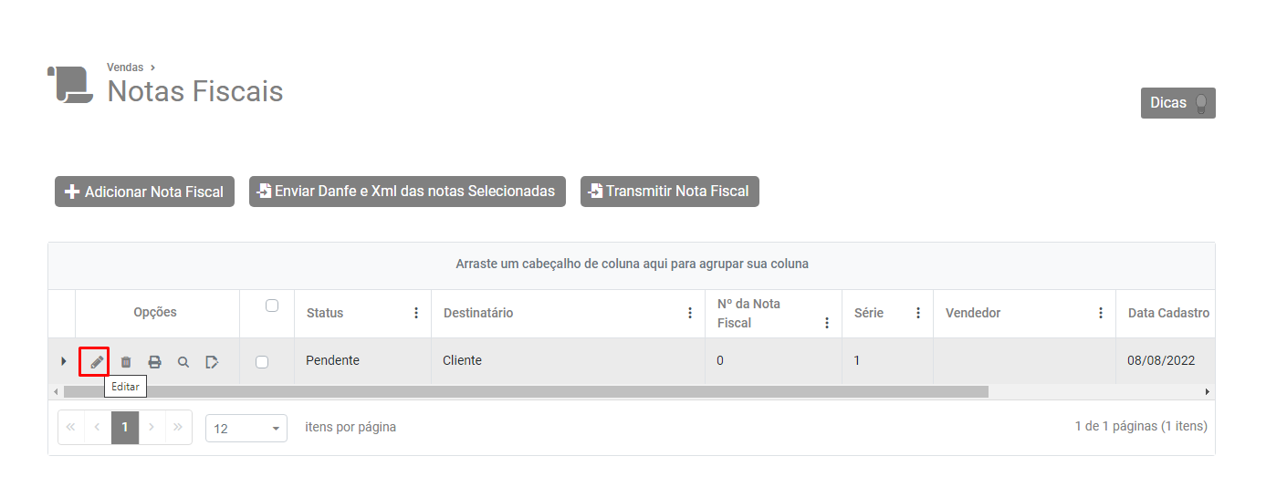 Pesquise pelo número da NF-e e faça a edição da mesma.