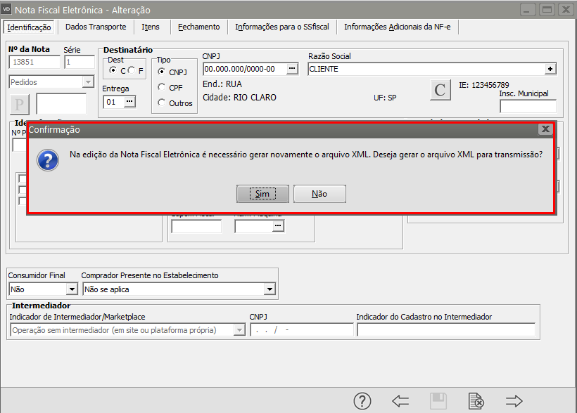 Em seguida Salve a NF-e e o Sistema irá questionar se você deseja gerar um novo XML, clique em SIM.