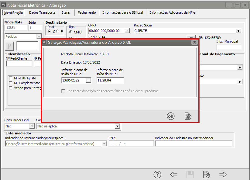 Serão apresentadas as informações do novo XML gerado, clique em OK