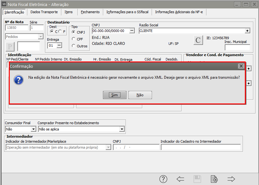Salve novamente e o Sistema irá questionar se você deseja gerar o arquivo XML para transmissão, clique em SIM.