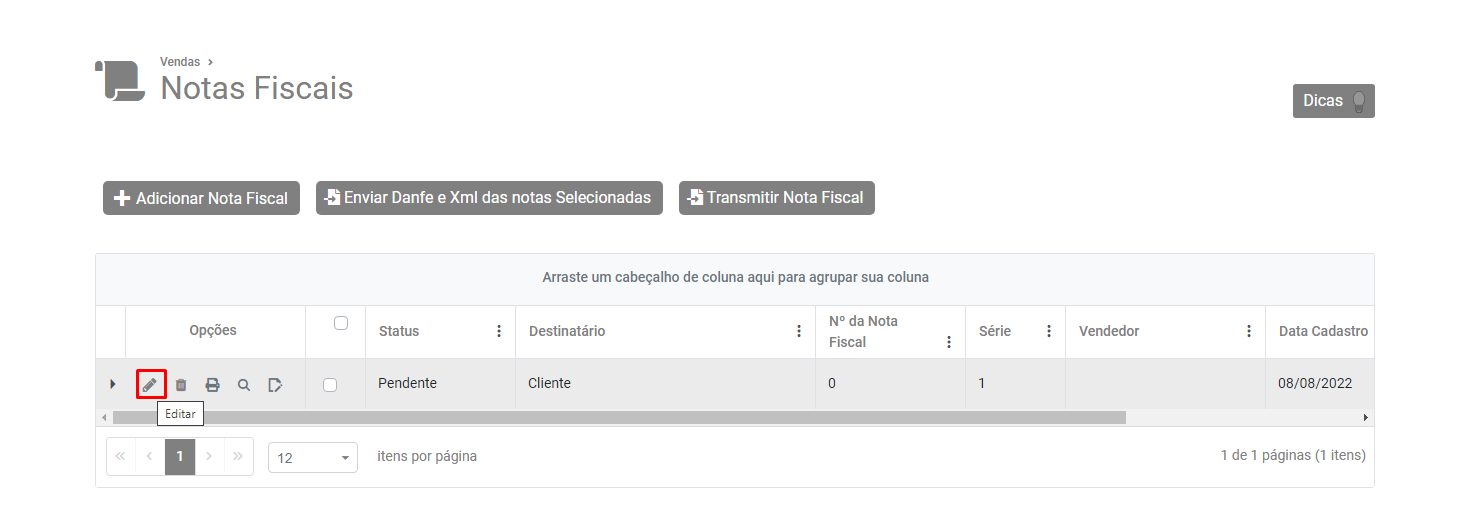 Pesquise pela empresa emitente da Nota Fiscal e faça a edição de seu cadastro