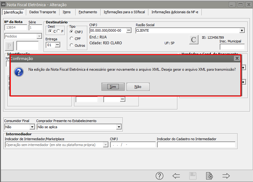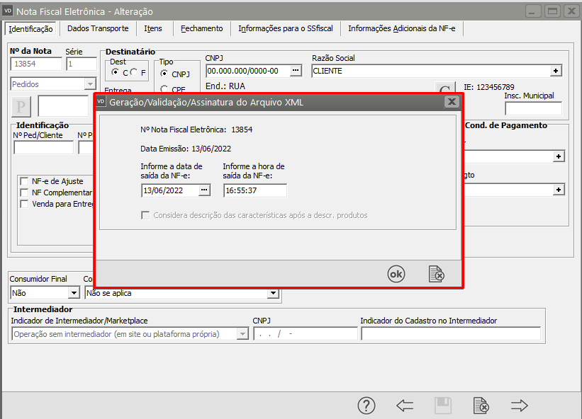 Será apresentada a tela com as informações do XML gerado, clique em OK.