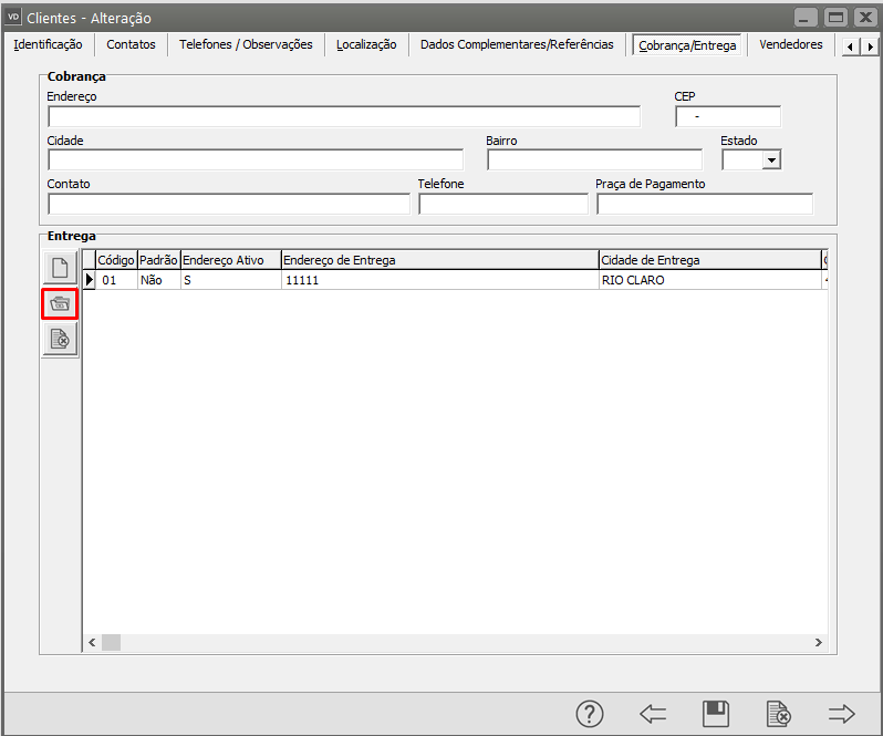 Busque novamente pelo campo Endereço de Entrega (para que o Sistema atualize as informações que foram alteradas no cadastro).