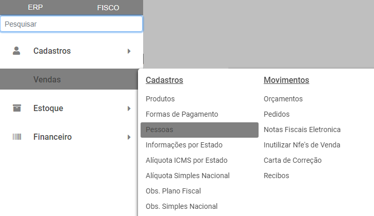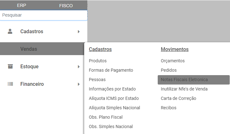 Após realizar as correções e salvar o cadastro do cliente, acesse o menu Vendas>Nota Fiscal Eletrônica