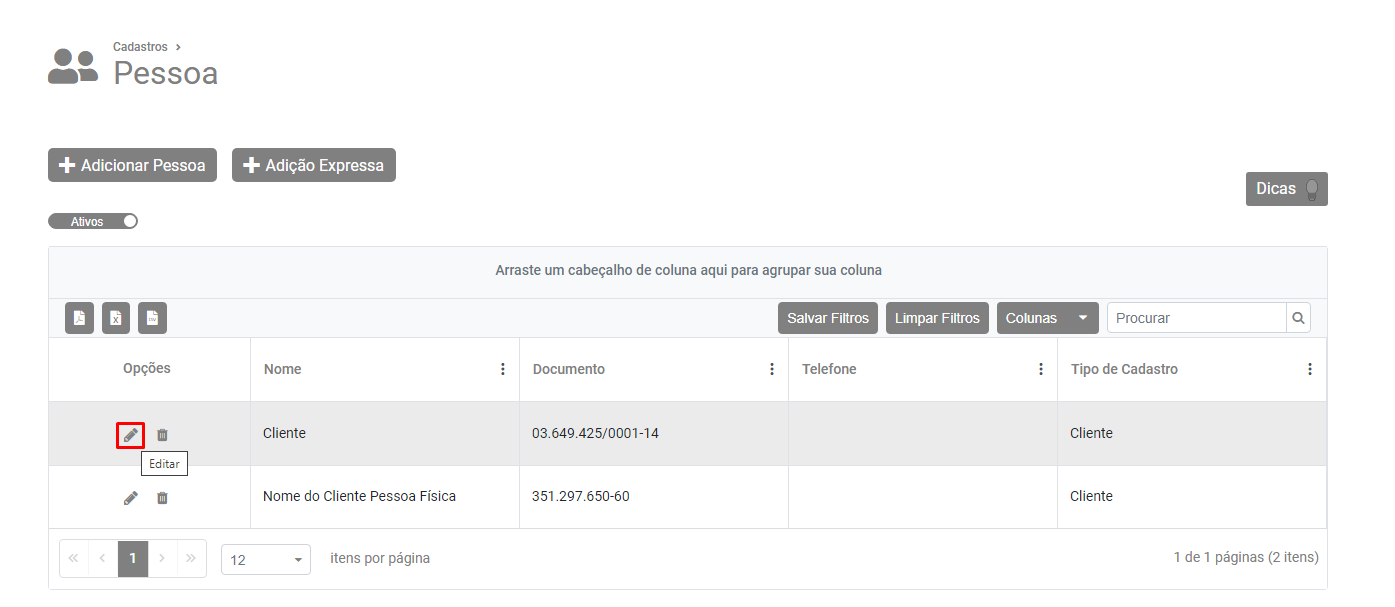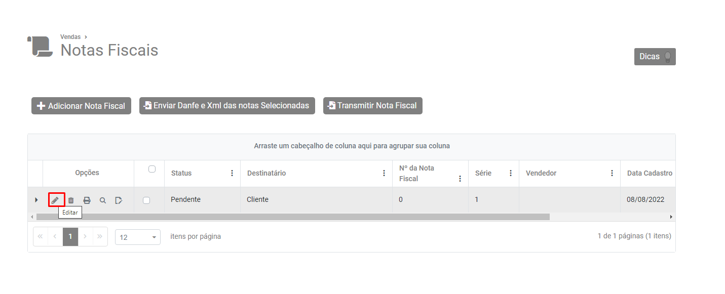 Pesquise pelo cliente/destinatário da nota fiscal eletrônica e faça a edição de seu cadastro