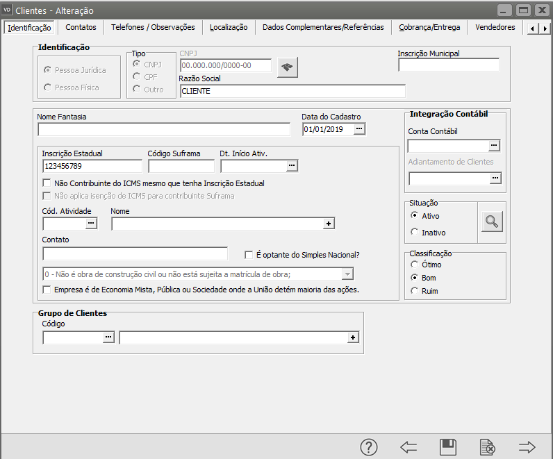 Conferência para verificar se existem caracteres especiais cadastrados no Cliente.
