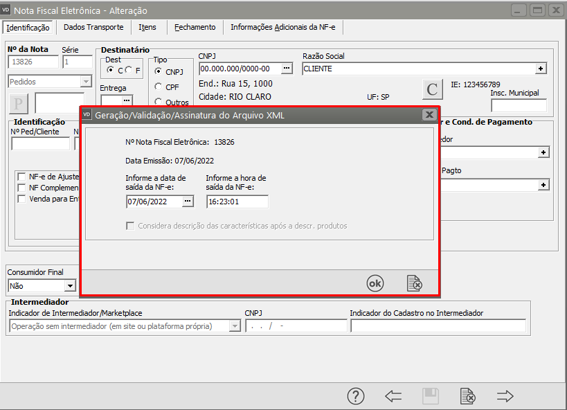 Serão apresentadas as informações do XML gerado, clique em OK.
