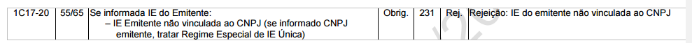 Descrição: IE do emitente não vinculada ao CNPJ/CPF