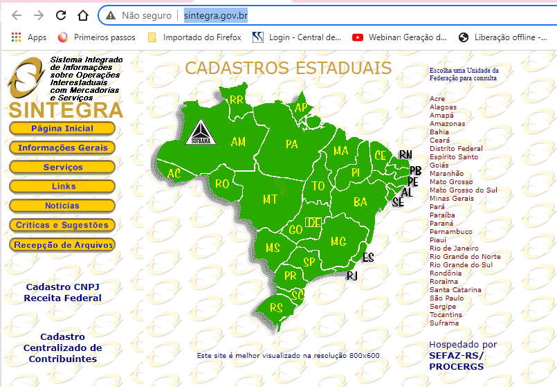 Consultar a Inscrição Estadual (IE) no Sintegra ou o Cadastro Centralizado de Contribuinte (CCC)