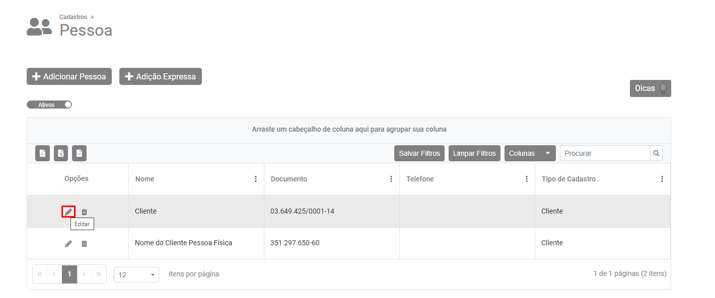 Pesquise pelo cliente e edite o seu cadastro