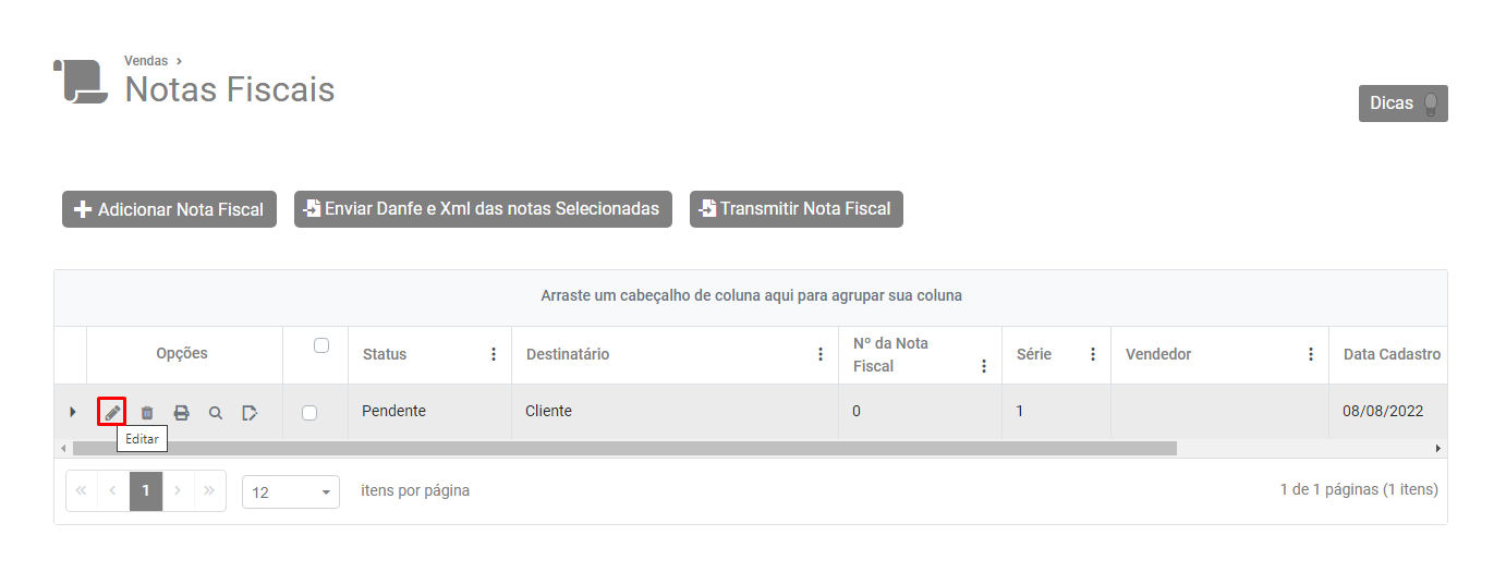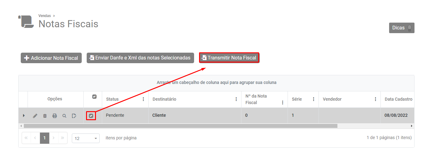 Selecione a NFe no Grid e clique no botão Transmitir Nota Fiscal