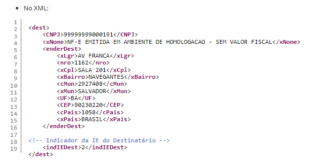 Descrição: Não informado a IE do destinatário