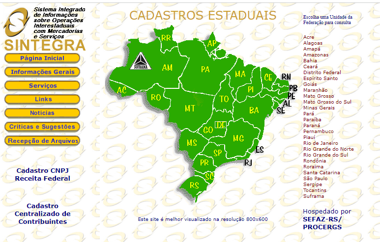 1) Consulte no SINTEGRA através do link http://www.sintegra.gov.br/