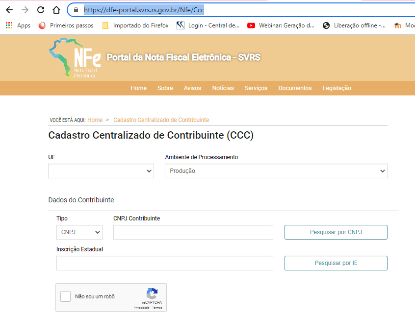 2) Consulte no Cadastro Centralizado de Contribuintes através do link https://dfe-portal.svrs.rs.gov.br/Nfe/Ccc