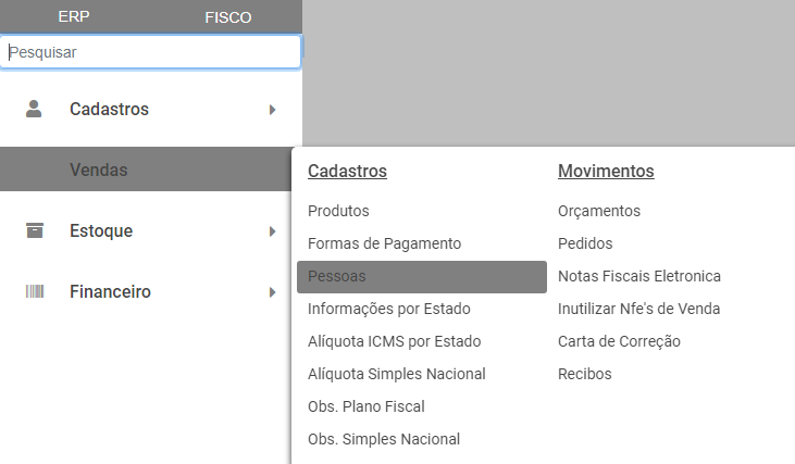 Pesquise pelo cliente/destinatário da nota fiscal que foi rejeitada pela Sefaz e edite seu cadastro
