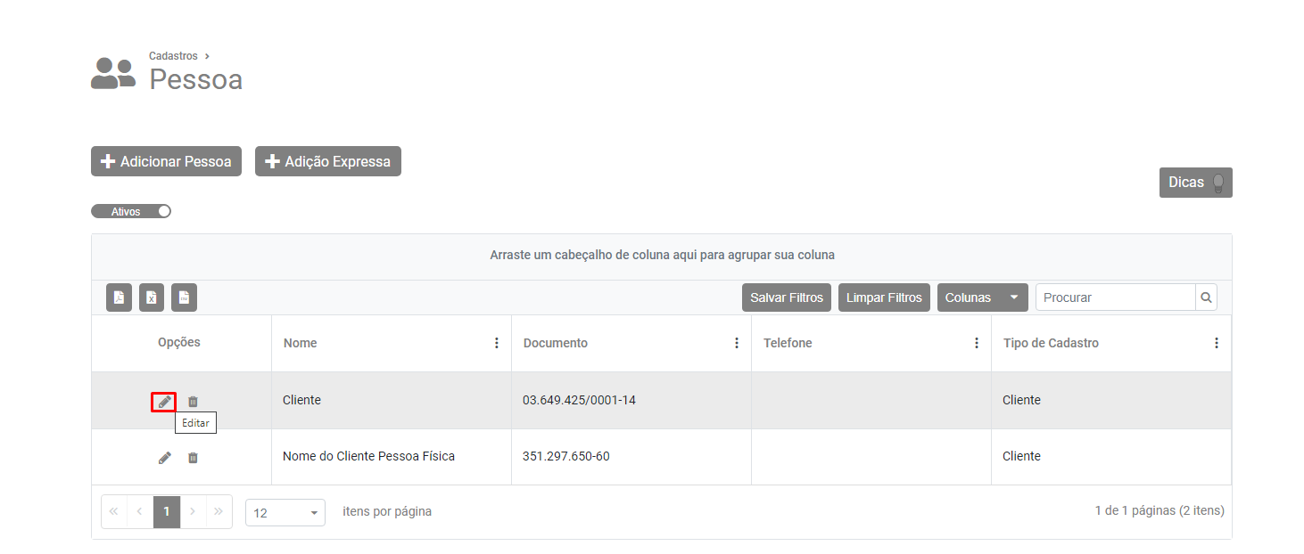Em seguida salve novamente o cadastro (para que o sistema atualize as informações)