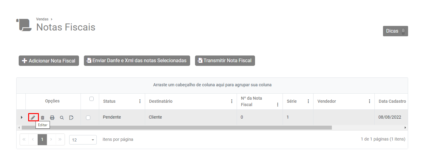 Pesquise pela nota fiscal que apresentou a rejeição da SEFAZ e faça a edição da mesma.