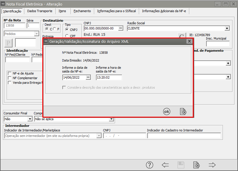 Serão apresentadas as informações constantes do XML, clique em OK