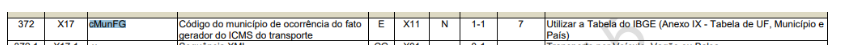 Descrição: Código Município do Fato Gerador de ICMS inexistente