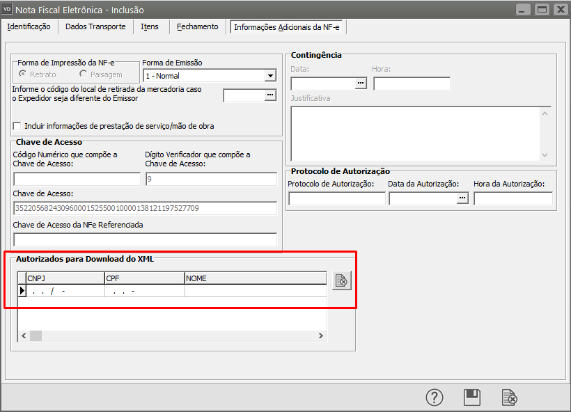 Remover o CNPJ informado na aba Informações Adicionais da NF-e