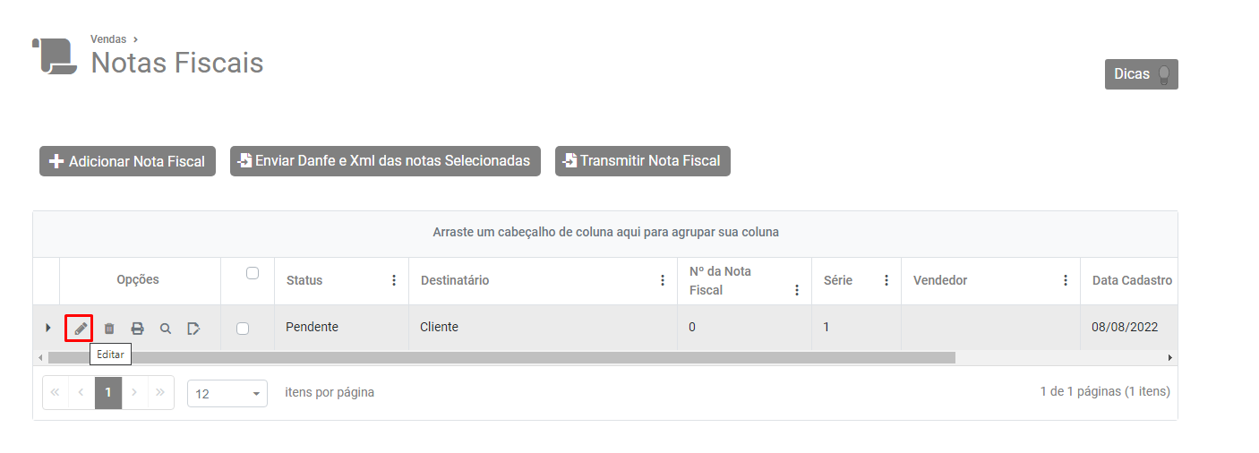 Faça as correções necessárias e em seguida salve novamente a Nota Fiscal.