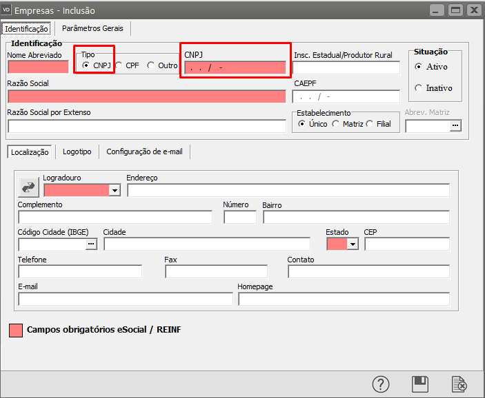 Verifique se foi informado um CNPJ válido para o cadastro da mesma.