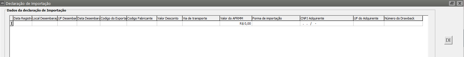 Preencha as Informações constantes na Declaração de Importação