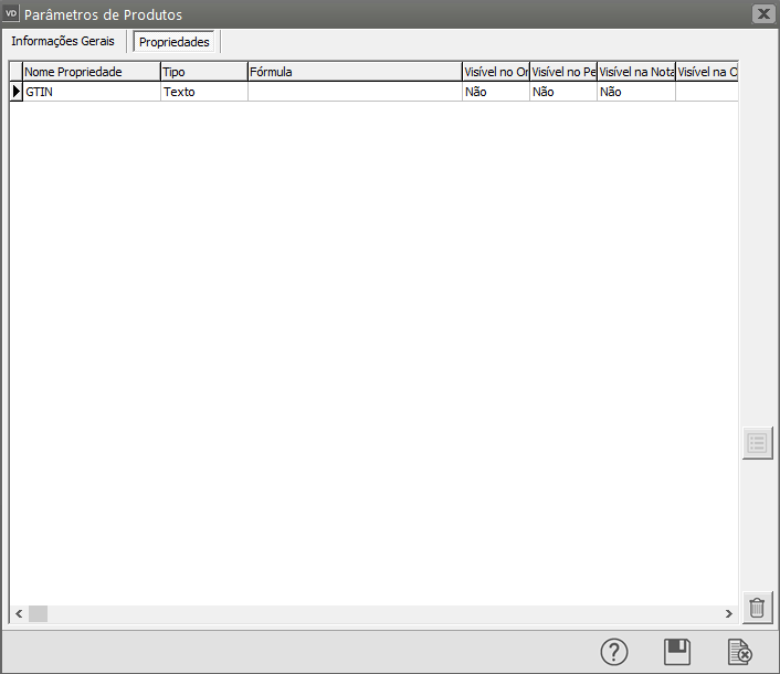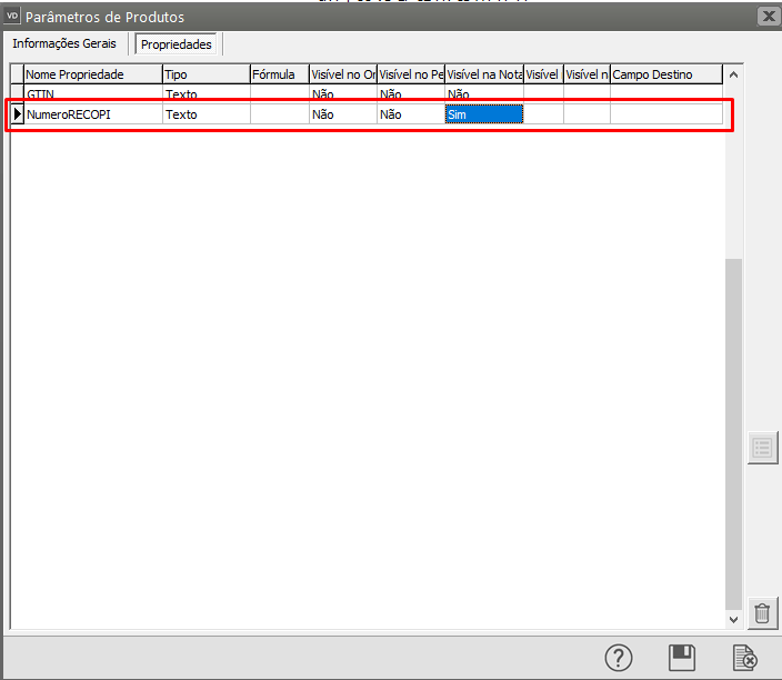 Se você acessar novamente Manutenção>Empresas>Parâmetros dos Produtos irá verificar que a propriedade foi criada, deixe definido SIM no campo Visível na Nota.