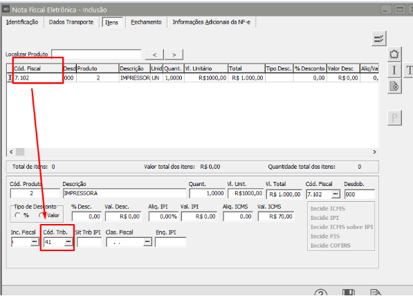 Situação Tributária do ICMS deve ser 41 para Exportação