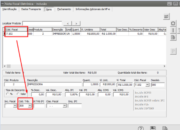 Se a empresa emitente da NF-e pertencer ao Simples Nacional, o Código de Tributação deverá ser 300