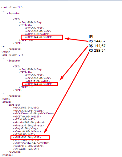 ... Rejeição 538: Total do IPI difere do somatório dos itens