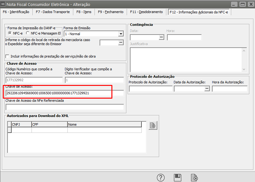 - Realize a venda novamente, assim a numeração da NFC-e será incrementado e a chave será gerada novamente;