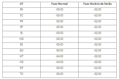2) Existe diferença entre o Fuso Normal e Fuso Horário de Verão para alguns Estados, conforme tabela abaixo, pode ser que o relógio de sua máquina não esteja respeitando o horário correto para seu Estado.