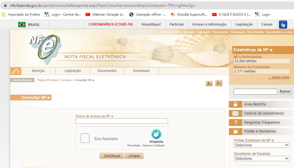 Copie a chave de acesso e acesse a consulta completa da Sefaz