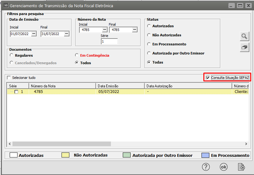 Esta consulta mostrará o Status da Nota na Sefaz, e é muito provável que ela não esteja autorizada.