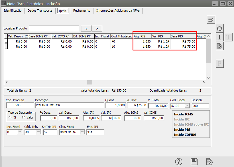 ... Rejeição 602: Total do PIS difere do somatório dos itens sujeitos ao ICMS